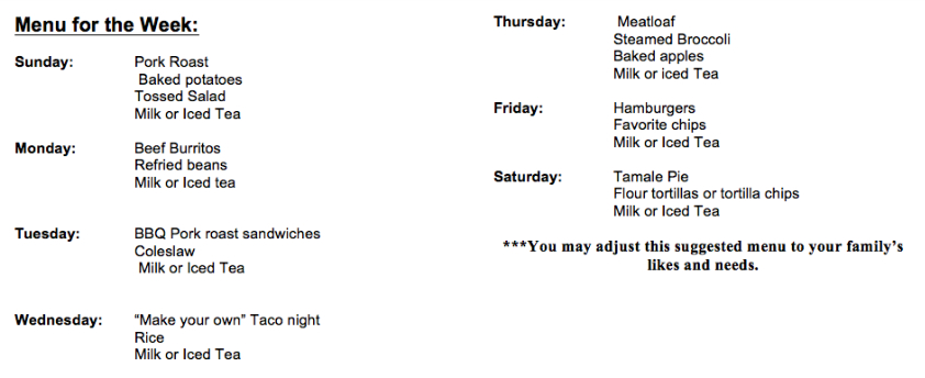The cost of all the items on the “Stretch Your Food Dollar Menu 23” is about $72.95. Note that most of the shopping list items for this quarters menu are non-processed…keeping costs down.
