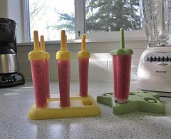 When it comes to popsicle molds, you can go as simple or as sensational as you want. If you are looking to spend as little money as possible on your summer snacks, start where you store your Tupperware. You would be amazed to know how many of us have hand-me-down popsicle molds hiding in the back of the cupboard. If you don’t have a hand-me-down set, grab a box of Dixie cups and some plastic wrap. Line the Dixie cups with plastic wrap and you have instant popsicle molds for pennies. You can find simple tools like popsicle sticks or the complete set of a popsicle mold just about anywhere, from the dollar store to Wal-Mart to the fancy kitchen store at the mall.